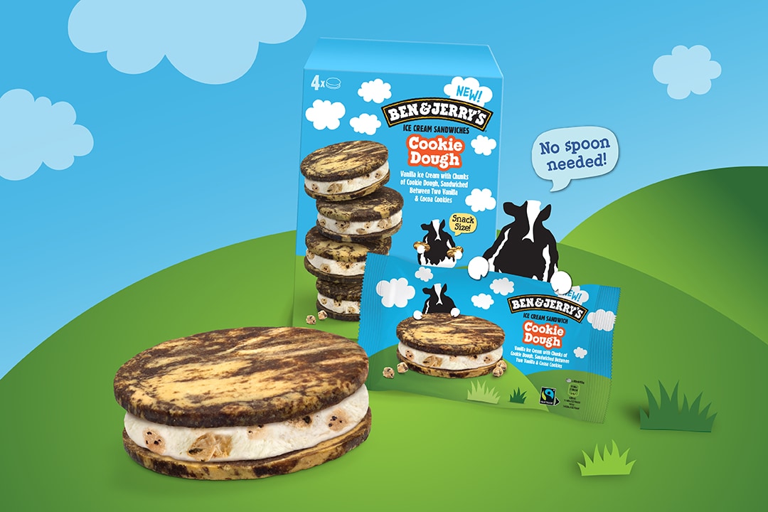 Grab indulgence by the cookies with the Cookie Dough ice cream sandwich, featuring double-delish, cocoa and vanilla marbled cookies. Cookies and ice cream...what more could you want?